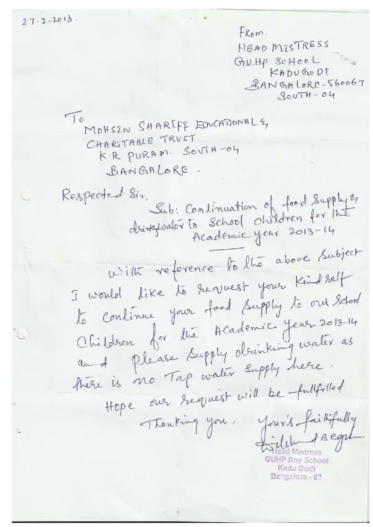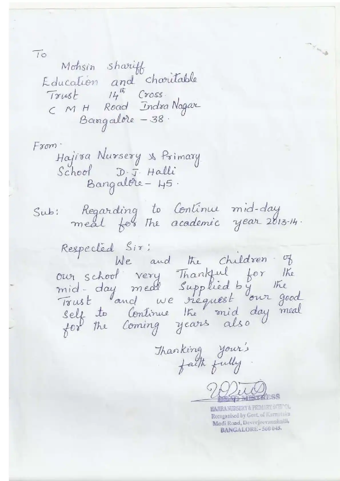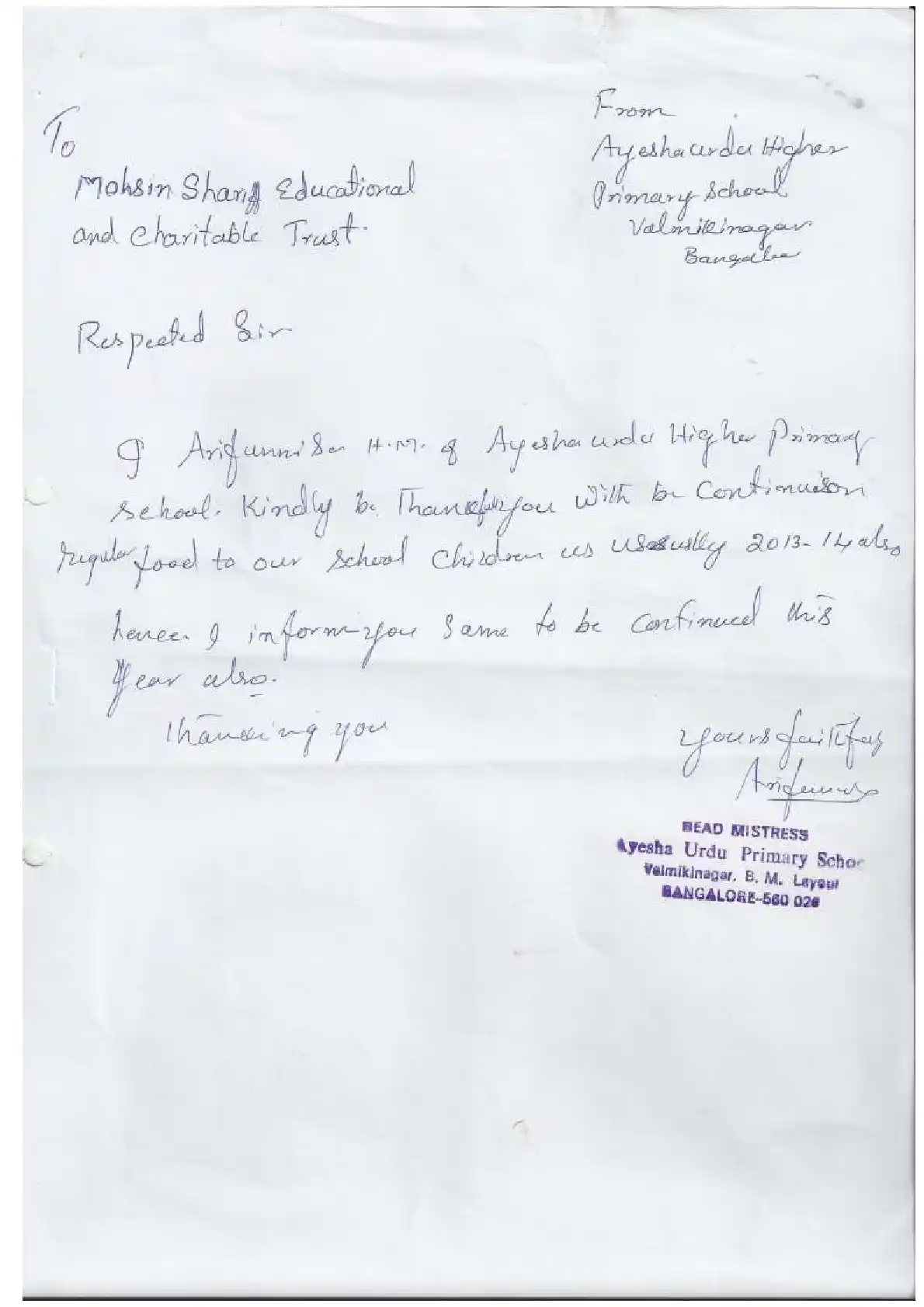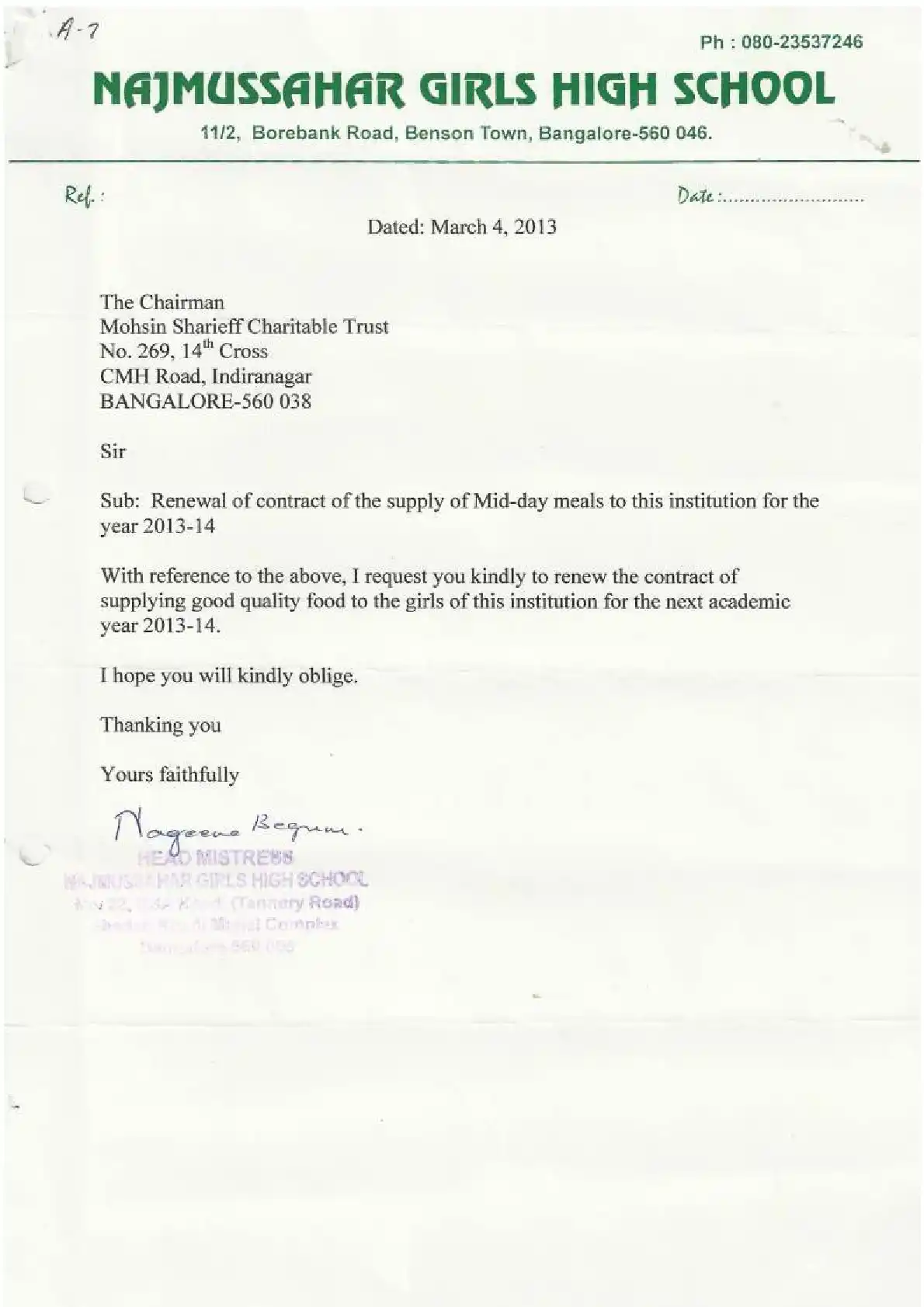 Aided English High School, Najmussahar ( Block Education Officer Range North-3)