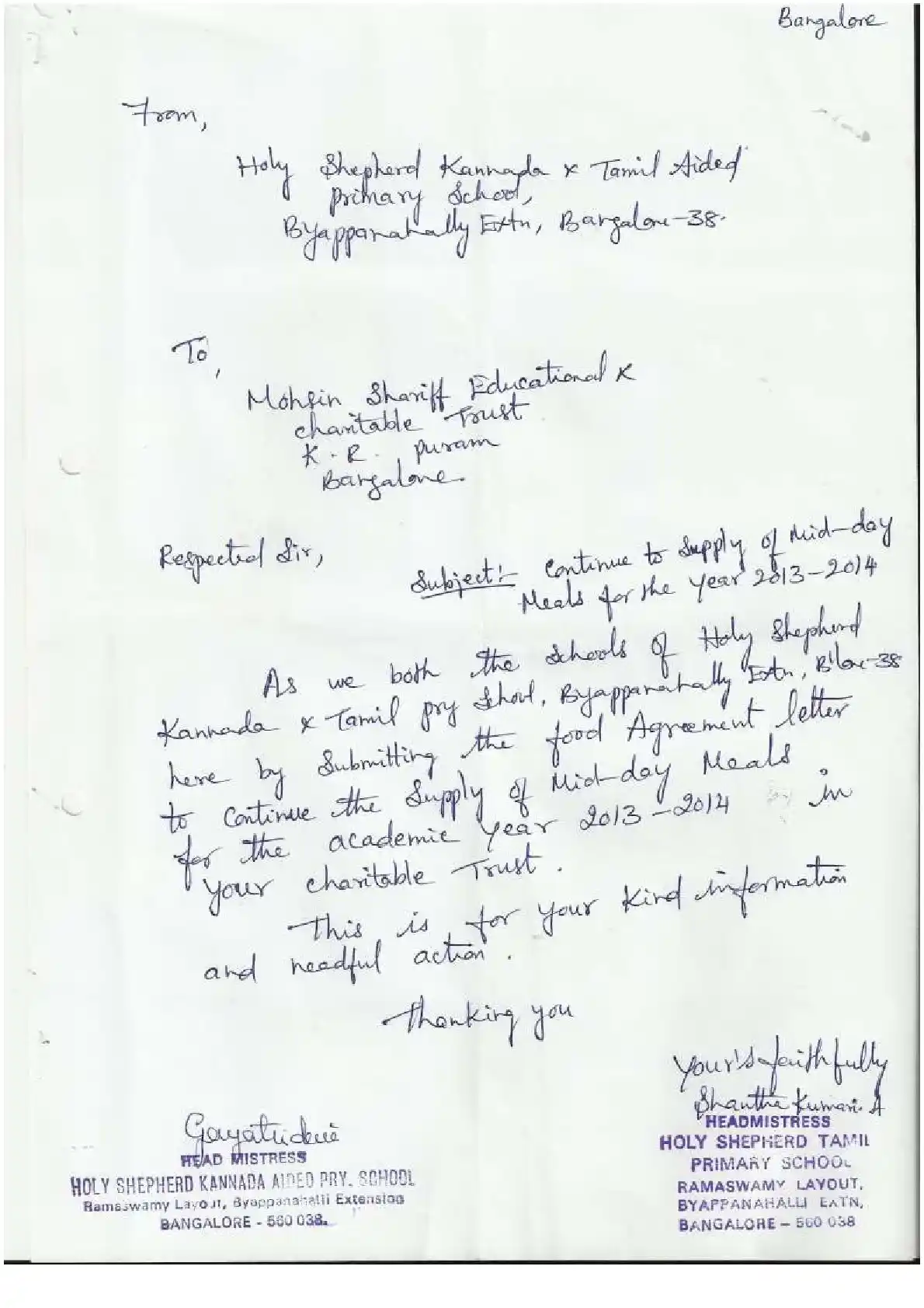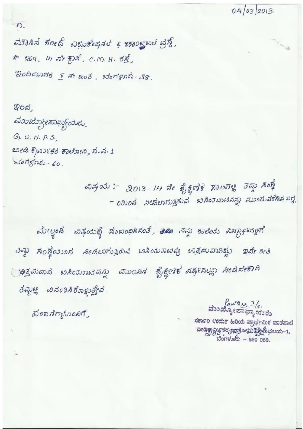 Aided Kannada Primary School, Holy Shepherd ( Block Education Officer Range North-3)