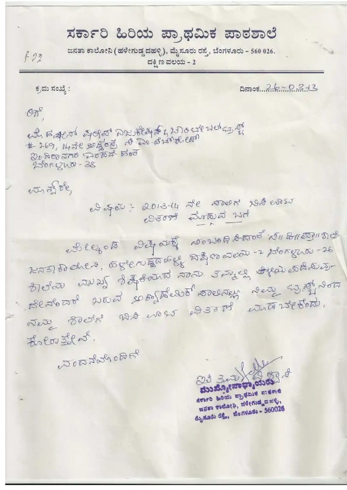 Government Kannada Primary School, Arundathinagar ( Block Education Officer Range South-2)