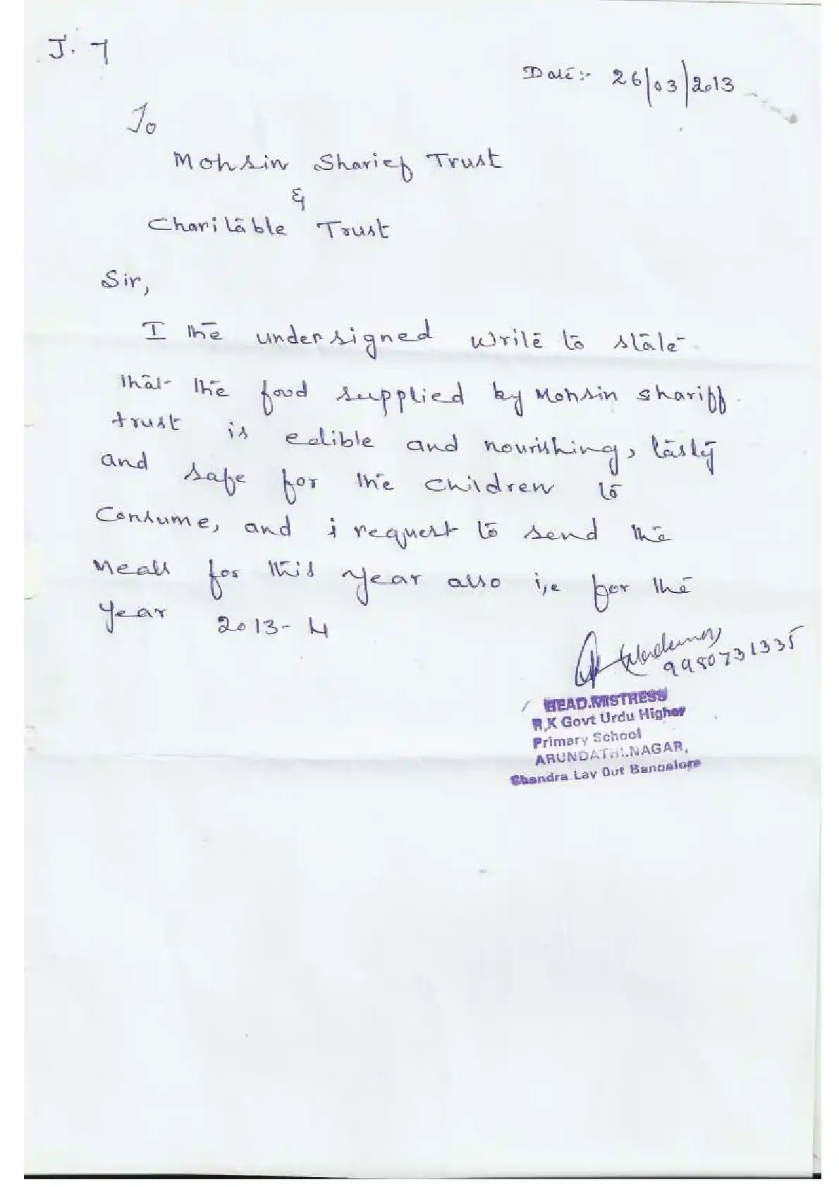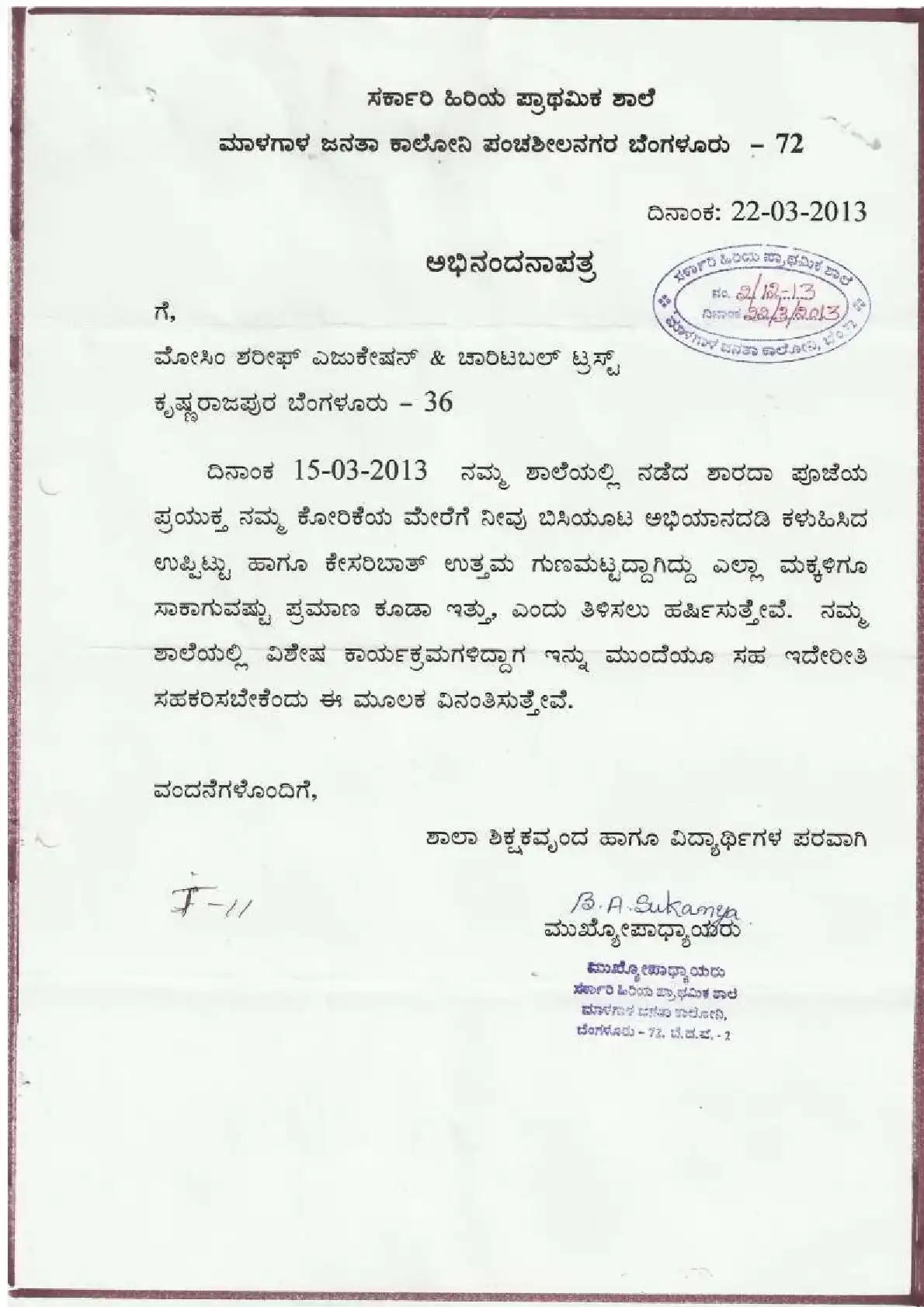 Government Kannada Primary School, Jananthacolony M. ( Block Education Officer Range South-2)