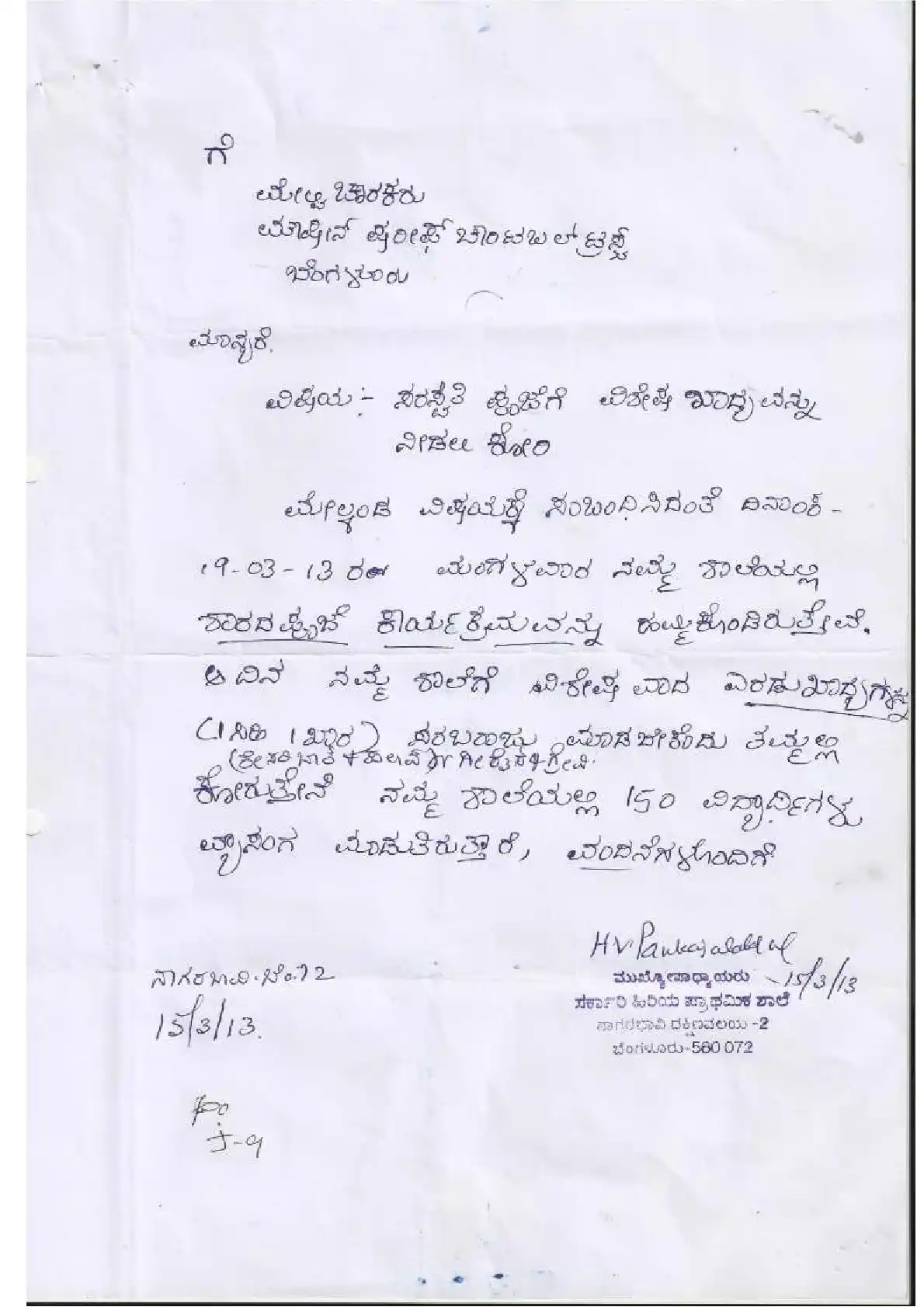Government Kannada Primary School, Nagarbhavi ( Block Education Officer Range South2)