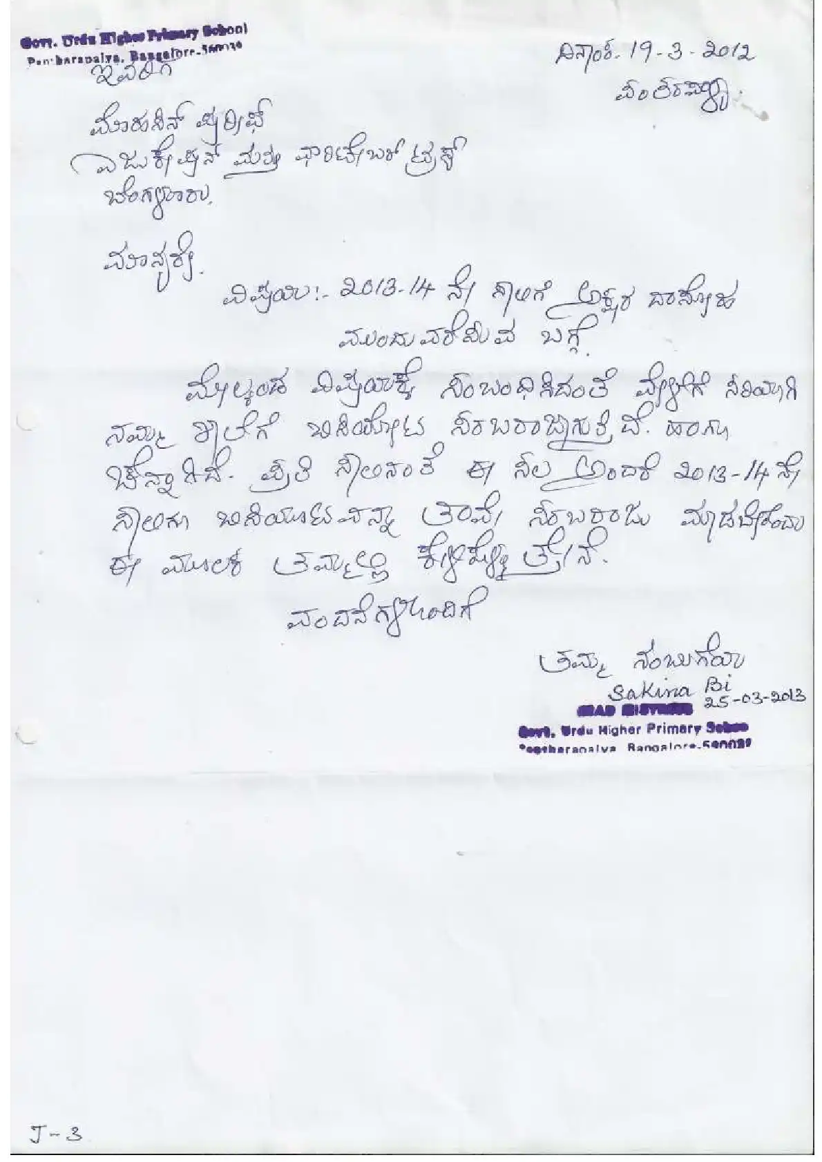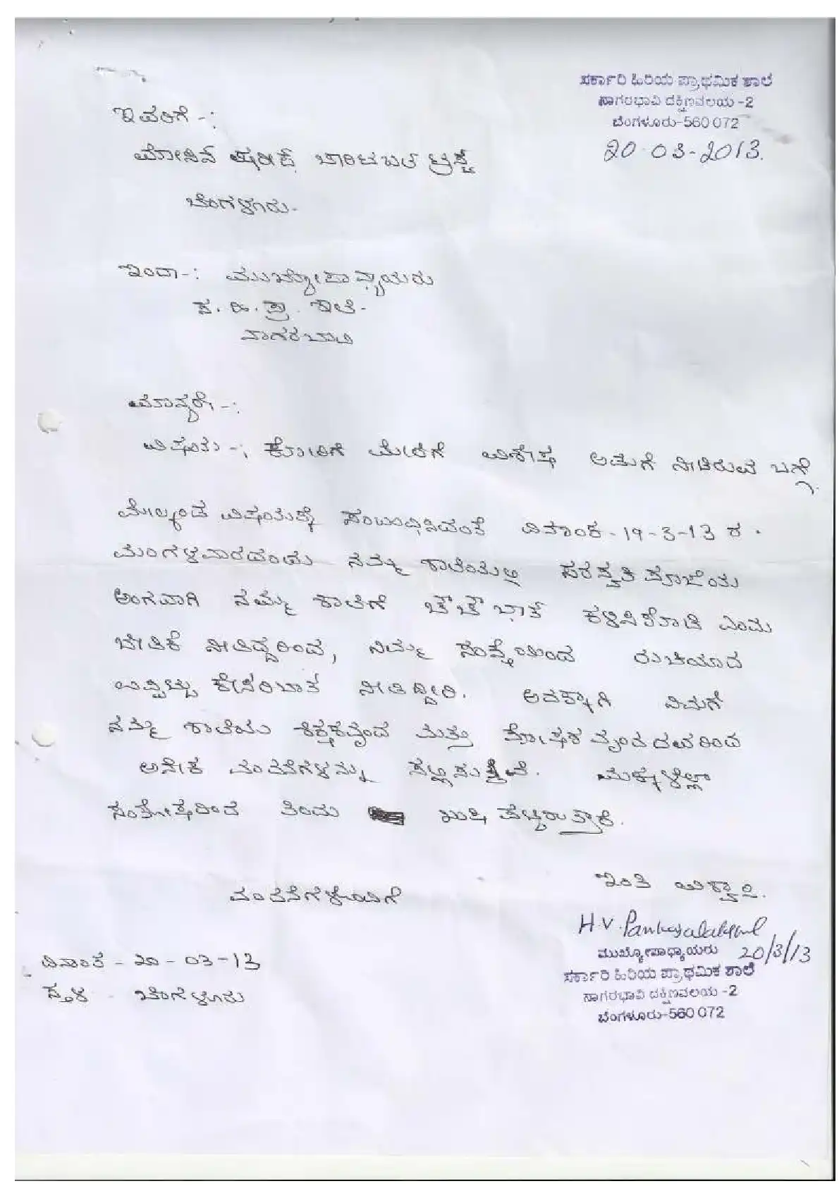 Government Urdu Primary School, Pantharpalya ( Block Education Officer Range South-2)