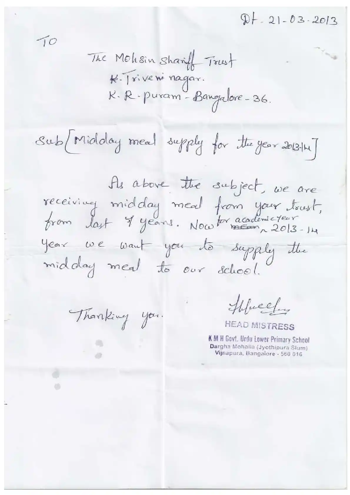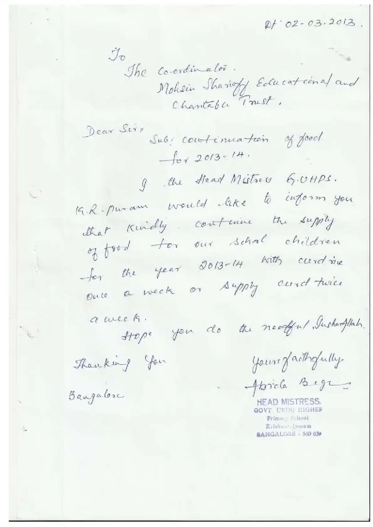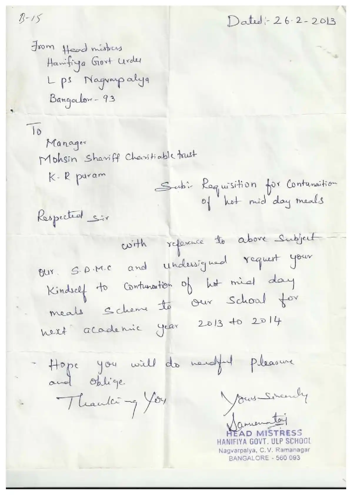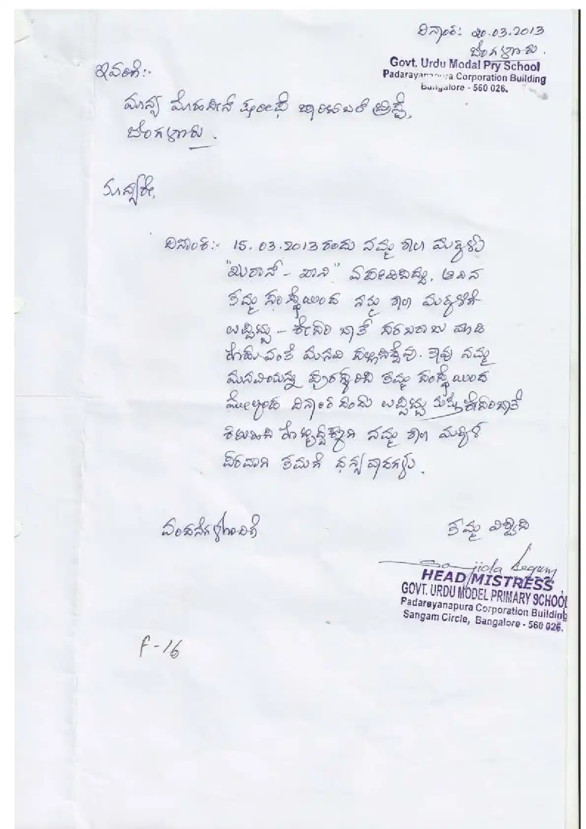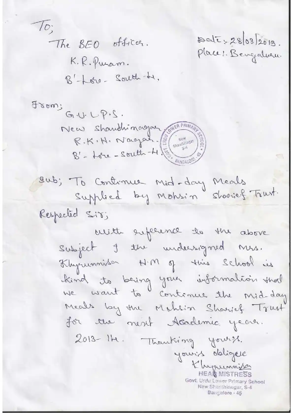 Government Urdu Primary School, K.R. Puram ( Block Education Officer Range South-4)