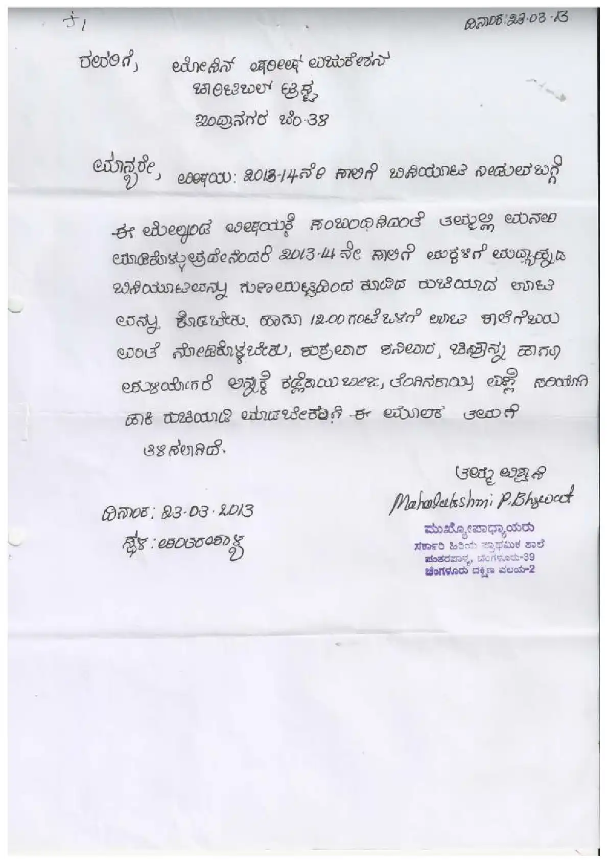 Government Kannada Primary School, Mudalpalya ( Block Education Officer Range South-2)