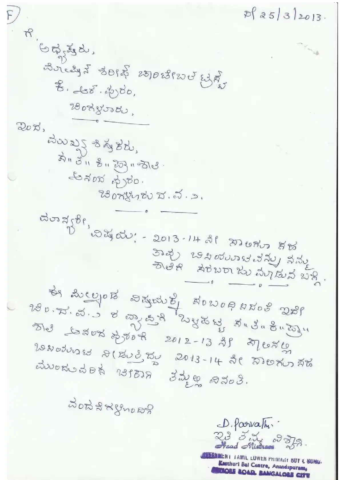 Government Kannada Primary School, Anandpura ( Block Education Officer Range South-2)