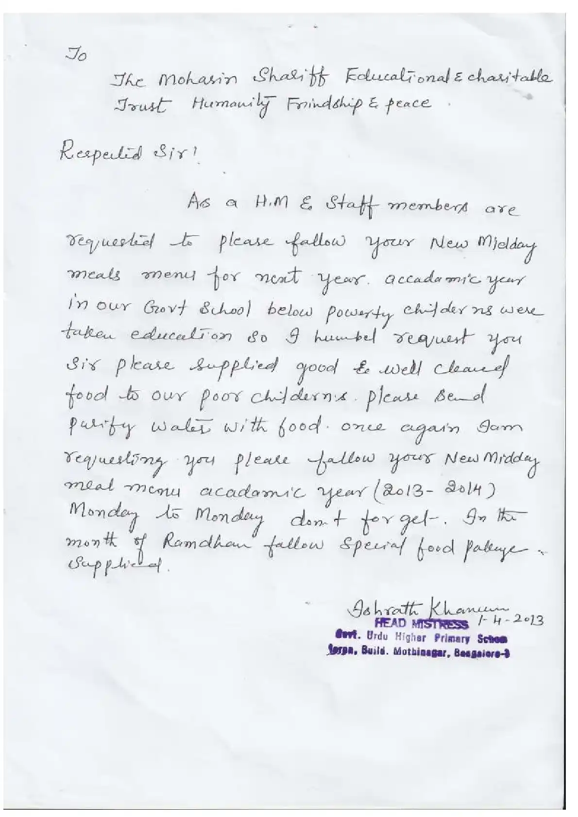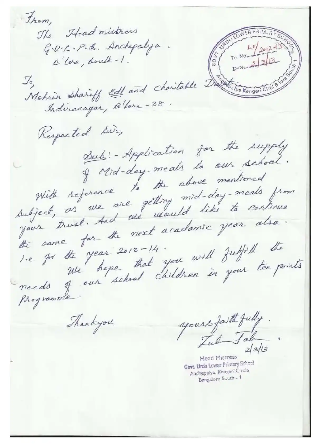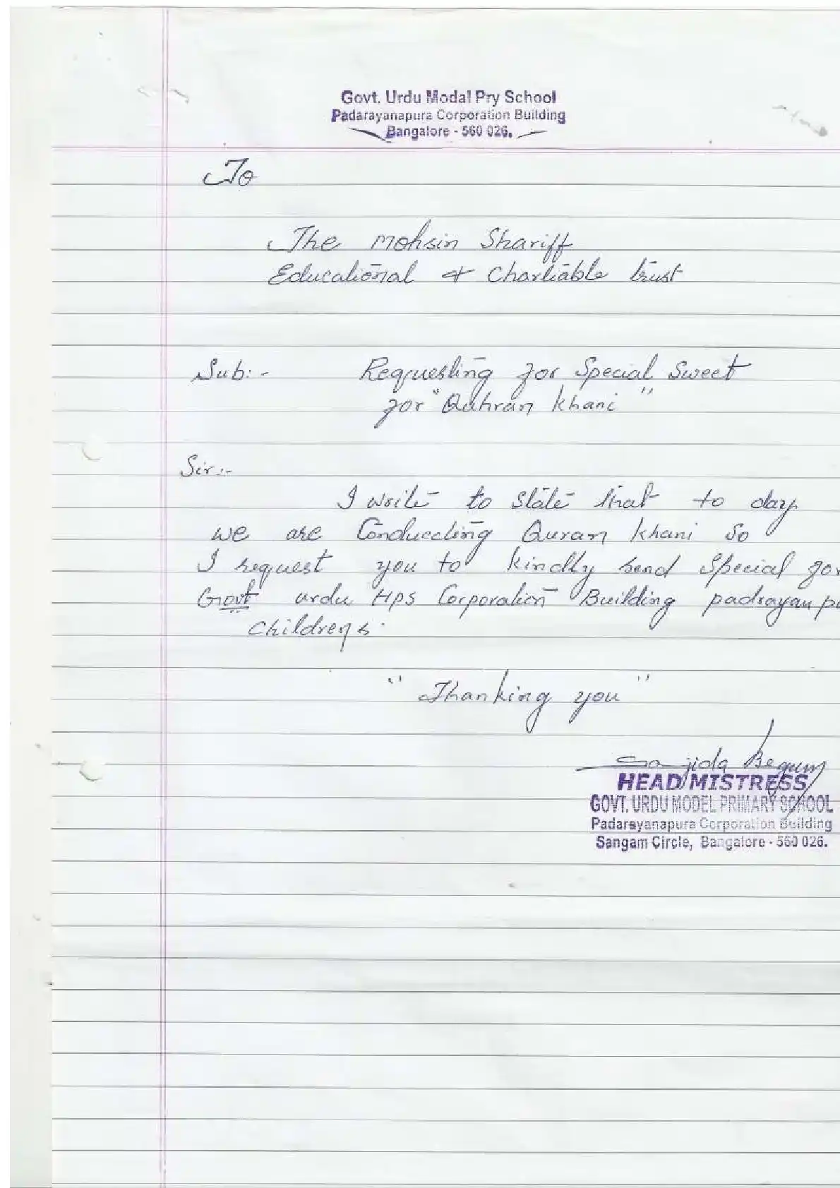 Government Urdu Primary School, Mothinagar ( Block Education Officer Range South-2)