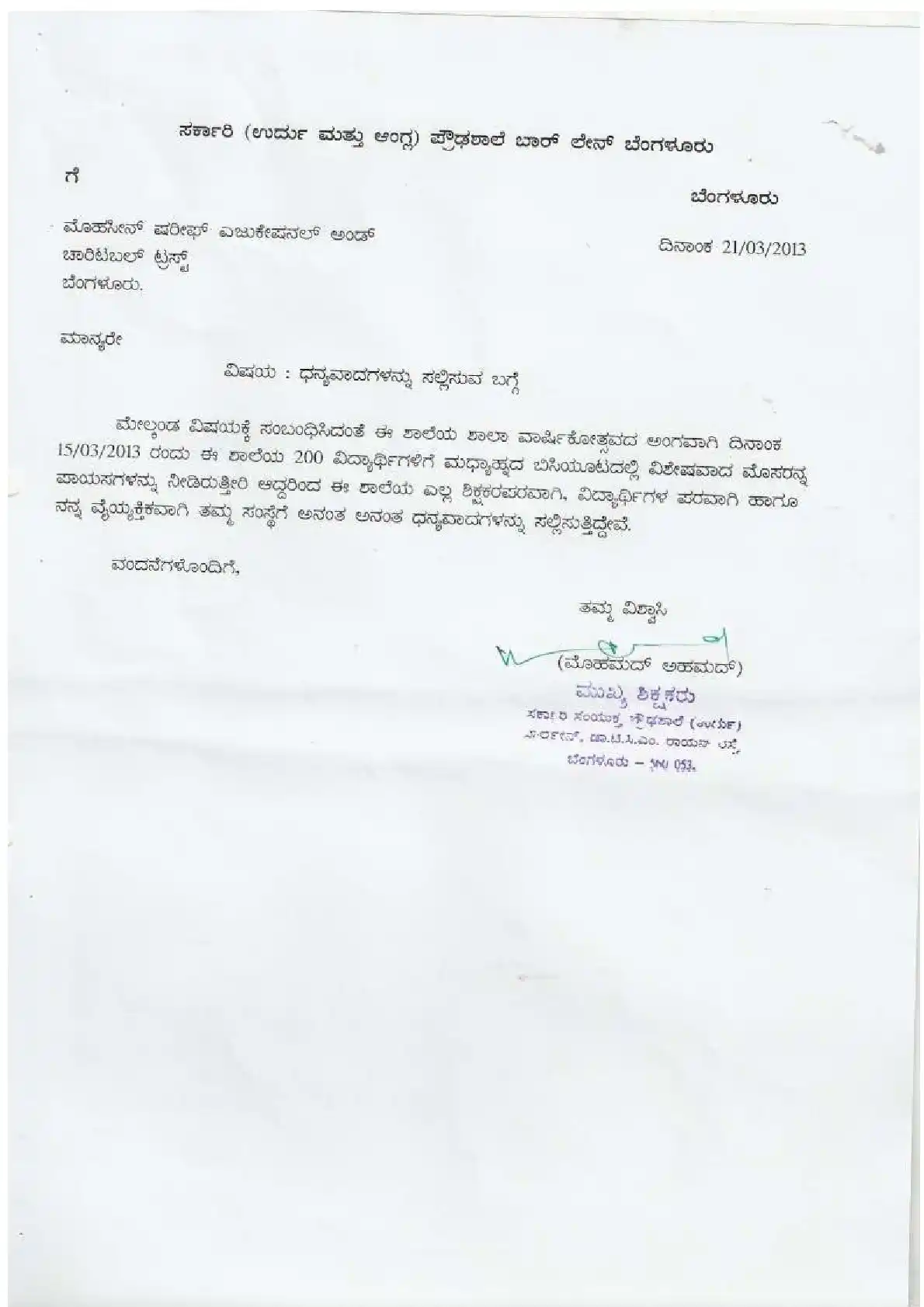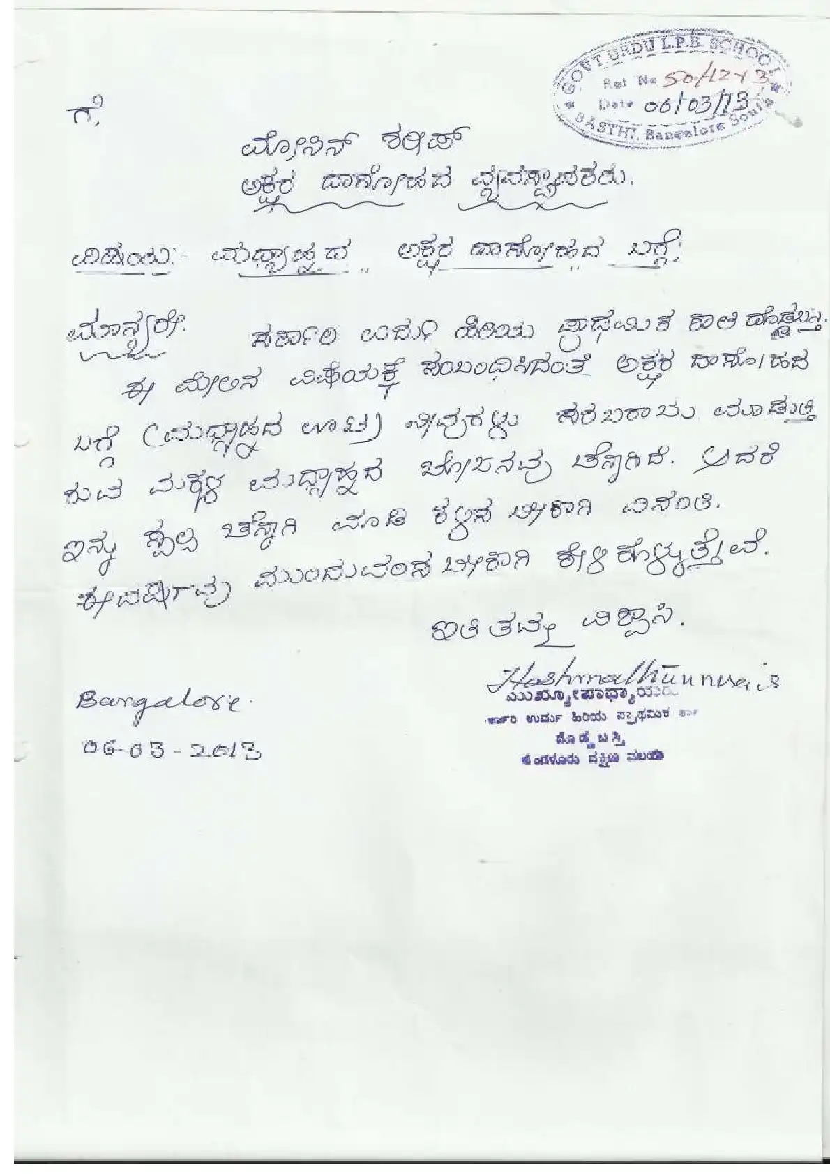 Government Urdu Primary School, Gangundanahalli ( Block Education Officer Range South-2)