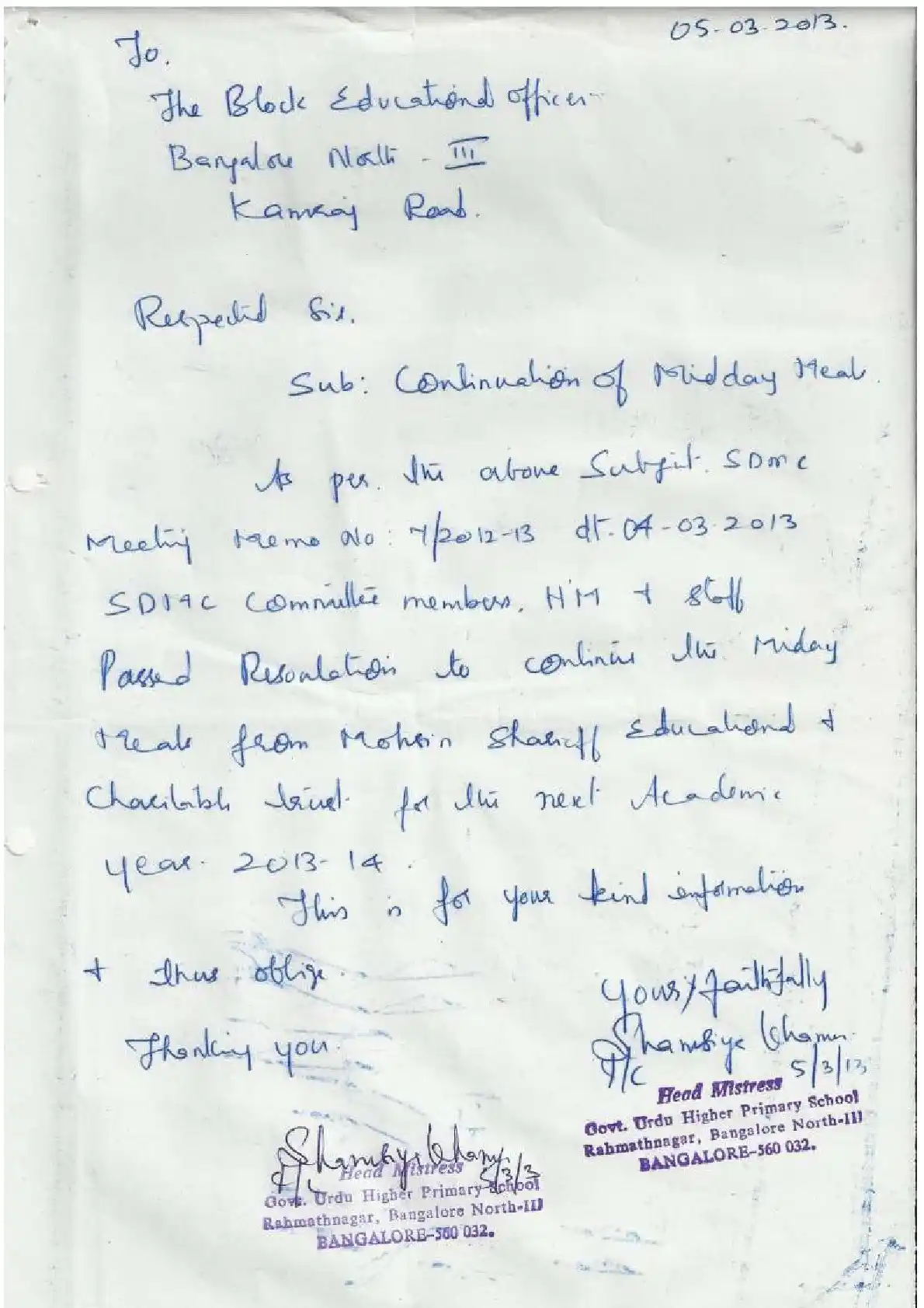 Government Urdu Primary School, Hegdenagar ( Block Education Officer Range South-4)